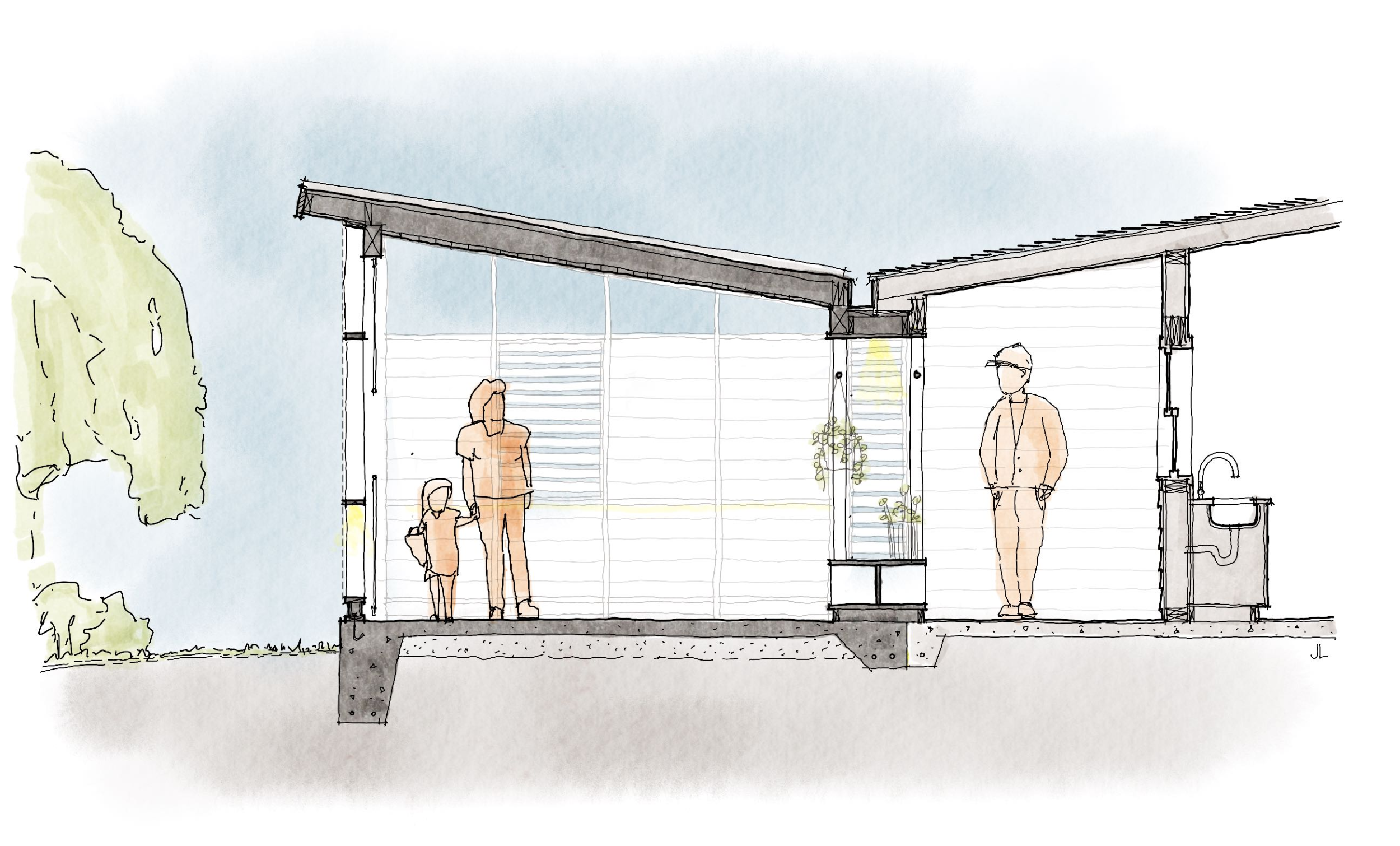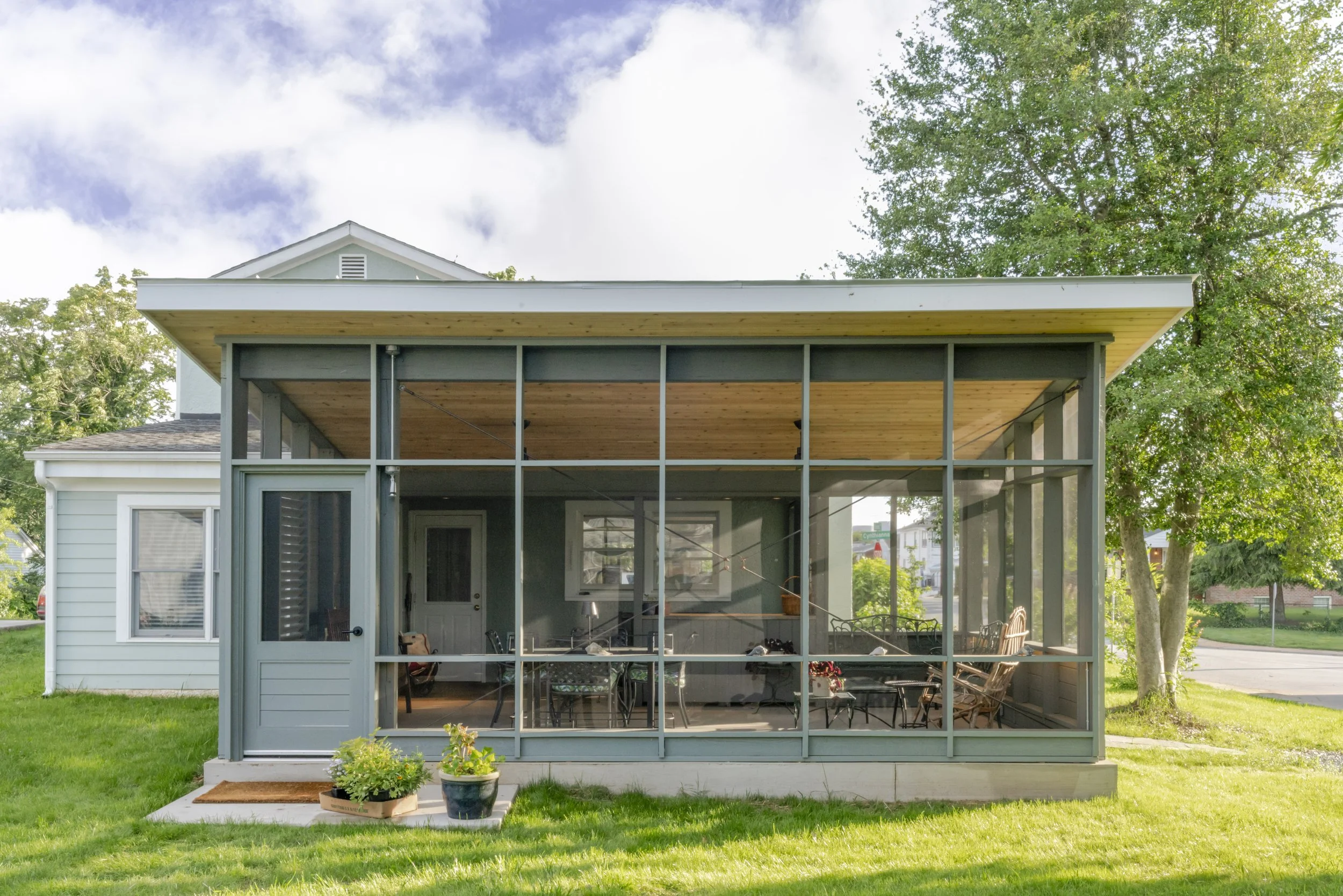 A screened garden room links the kitchen to the land and streetscapes beyond.