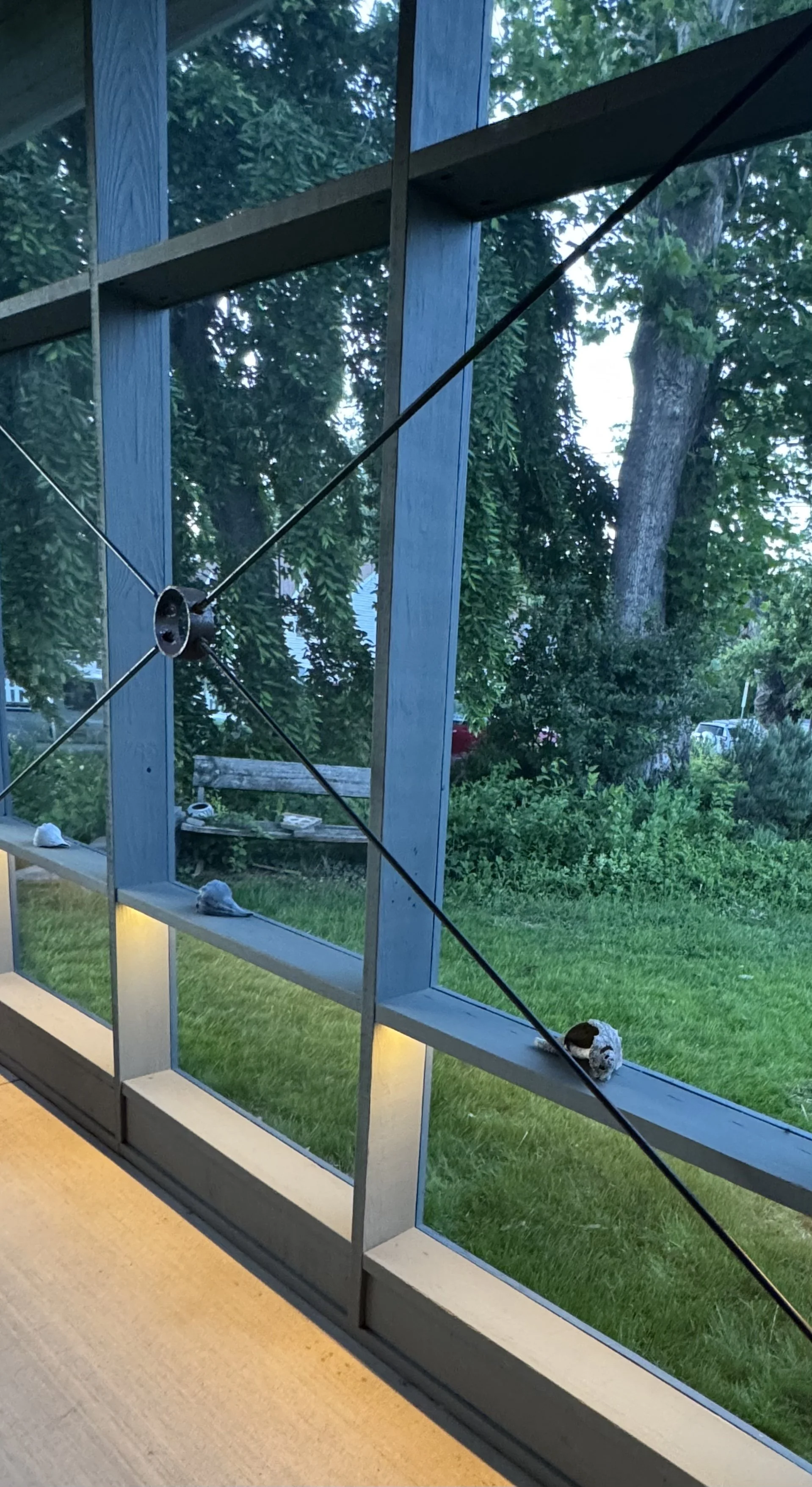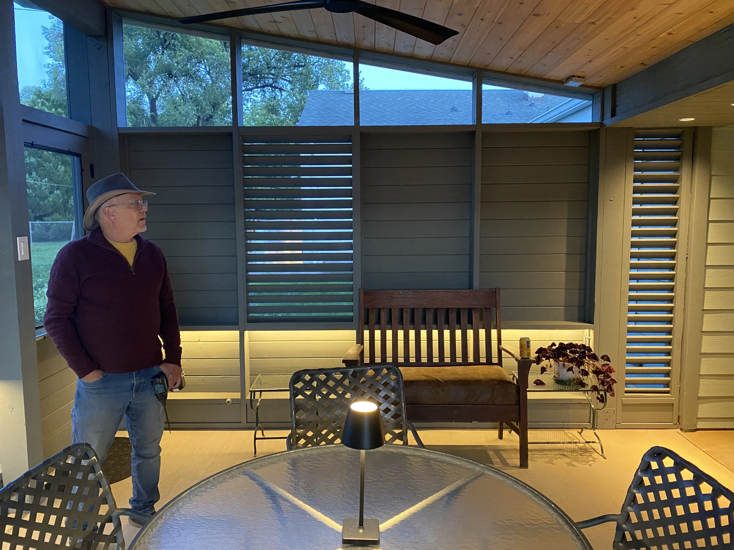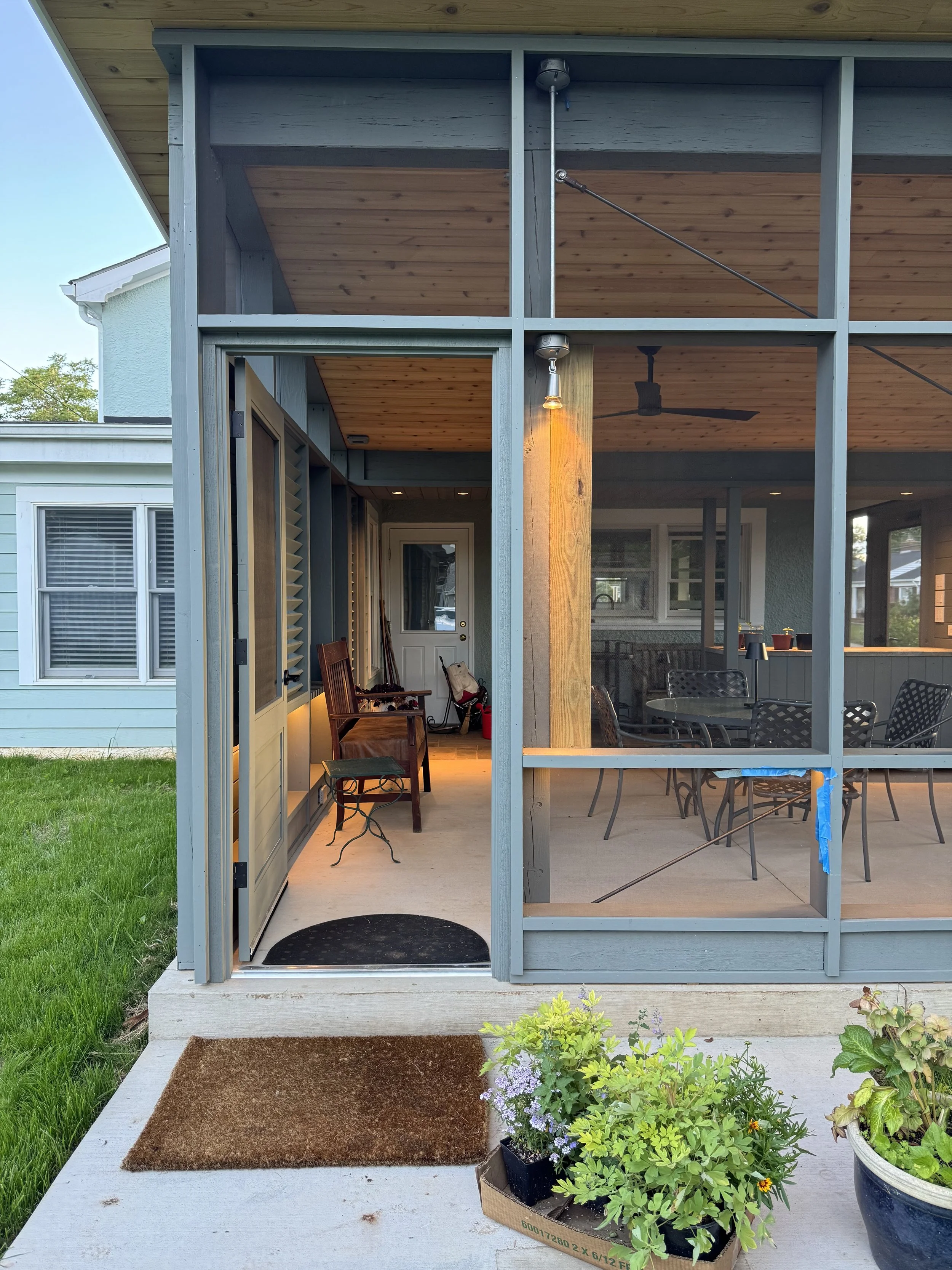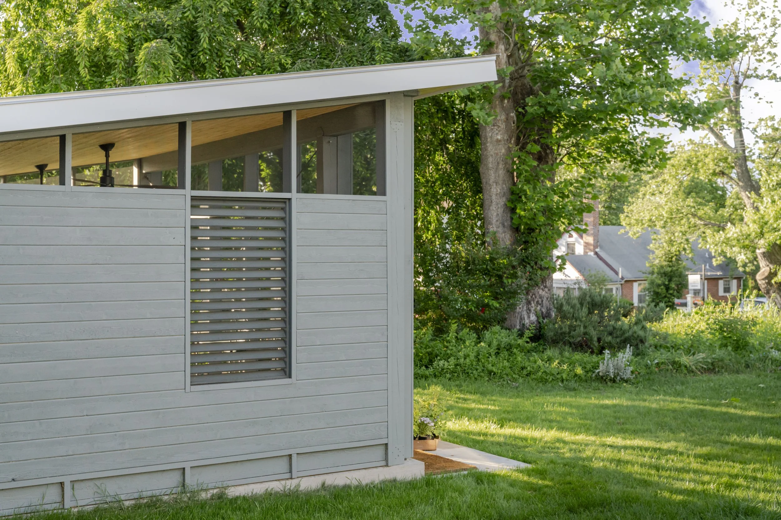 The prompt of this project was to rethink what a screened porch might be should it sit alongside a historical home in the heart of Charlottesville. The result is a wonderfully inhabitable garden room that serves as a link between the garden spaces, lively street, and the interior of the home. Its simple shape respects the home's historic architectural style while holding it own as something new. Care was taken in the details to create a special place in which to relax, eat dinner, and play games. The warm cedar lining of the canopy extends outside of the screening, blurring the boundary between inside and out. A steel rod cross brace not only provides lateral support but also adds an aesthetic element of interest. The top of the horizontal rail is a perfect spot to set a drink while a strip light on the bottom provides a band of light at dusk.